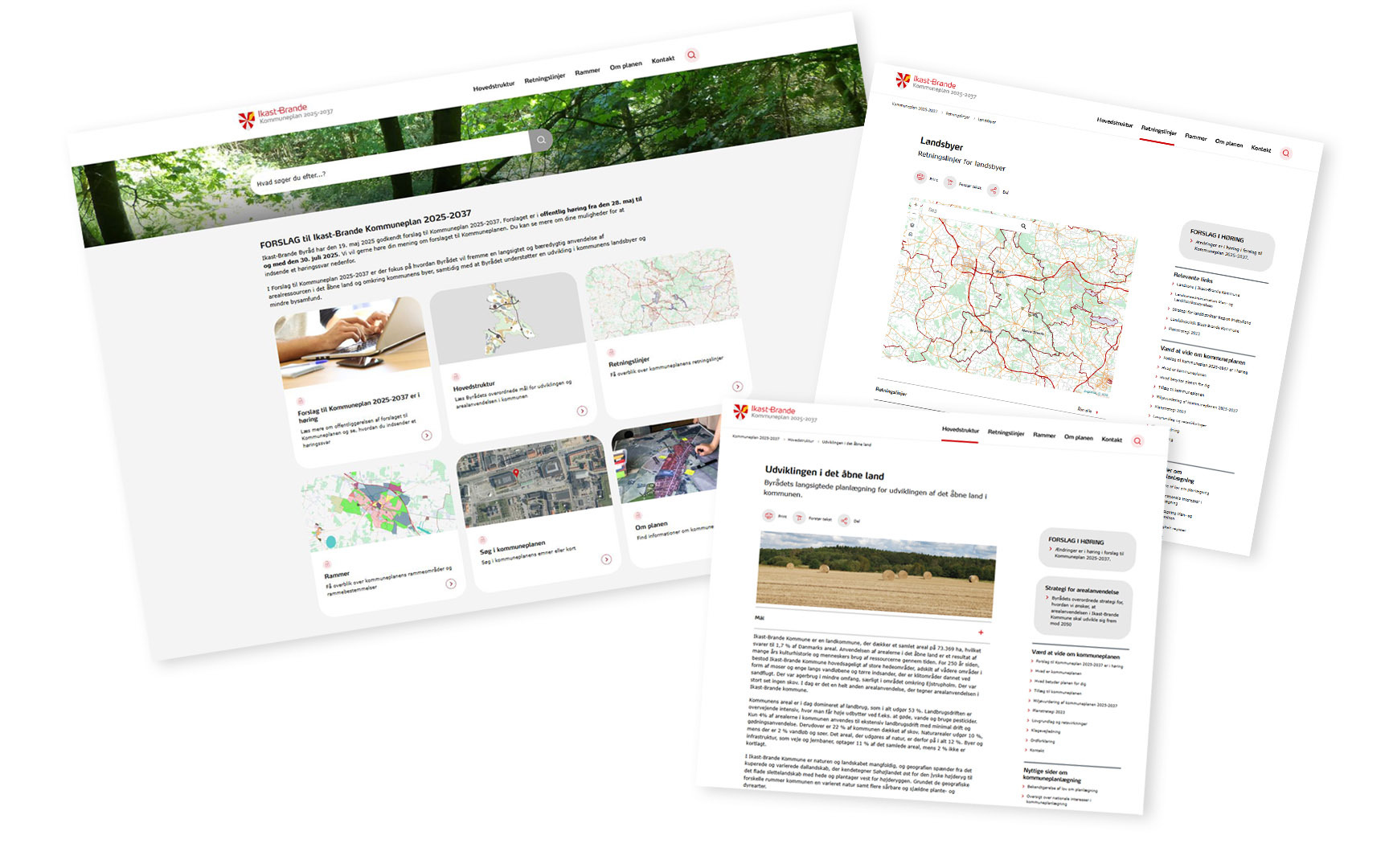 Forslaget til Ikast-Brande Kommuneplan 2025-2037 blev godkendt af byrådet den 19. maj 2025 og er blevet offentliggjort den 28. maj 2025. Denne omfattende digitale plan er tilgængelig på sin egen hjemmeside: https://ikast-brande.dk/kommuneplan2025.