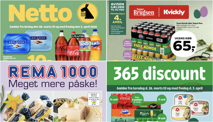 Hos Coop365 kan du få en god pris på forskellige pakker af Coca-Cola, Fanta, Tuborg Squash eller Carlsberg, Tuborg. Hver pakke indeholder 15-24 x 33 cl. Tilbuddet gælder fra torsdag 26. marts til fredag 3. april.